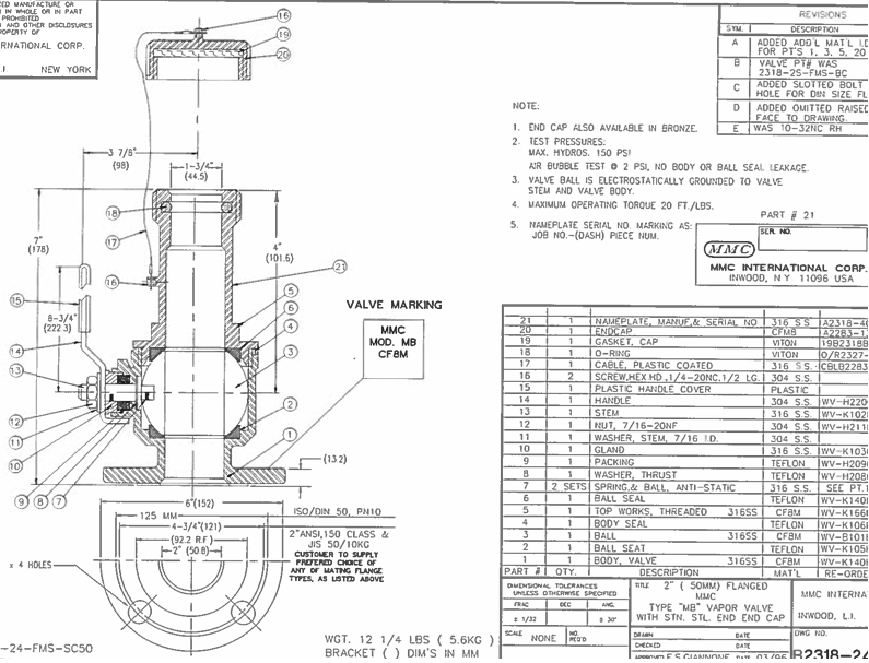 B-2318-24-SBC E 2” (50MM) Flange MMC Type “MB” Vapor Valve with Bronze End Cap
