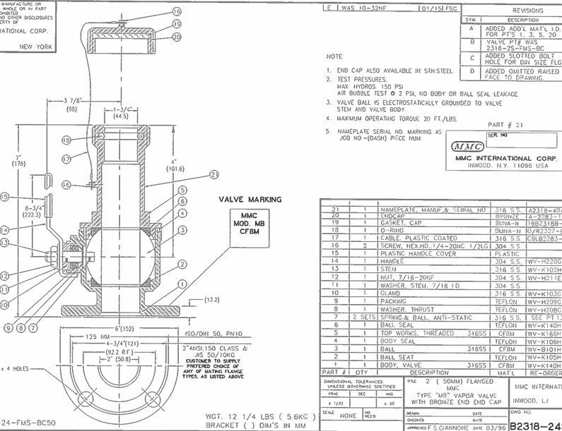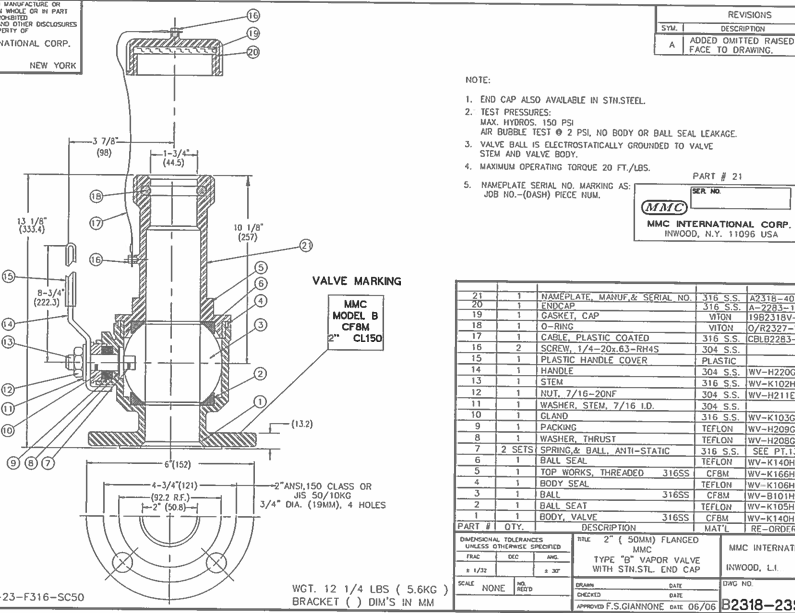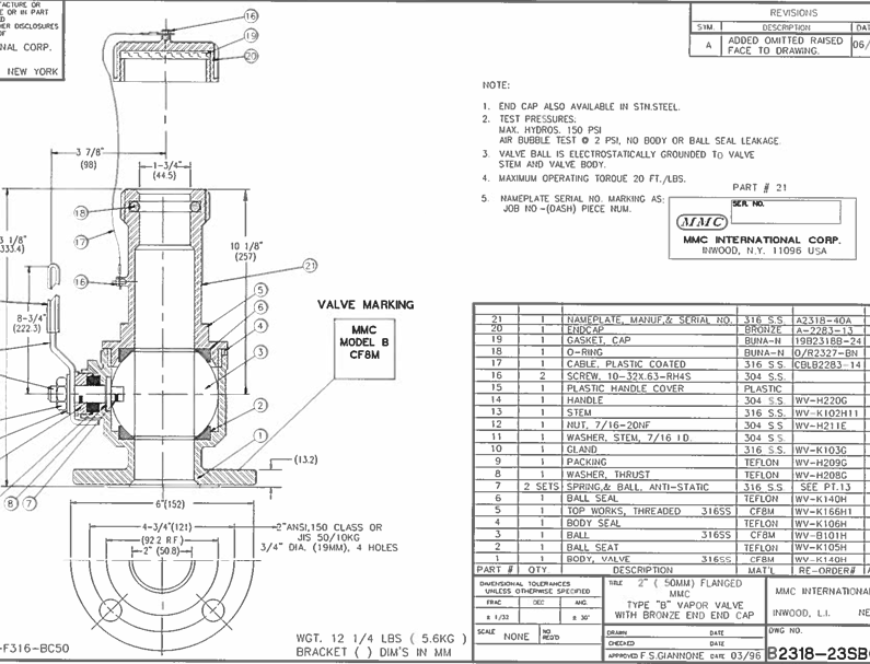 B -2318-23-SBC A 2” (50MM) Flange MMC Type “B” Vapor Valve with Bronze. End Cap